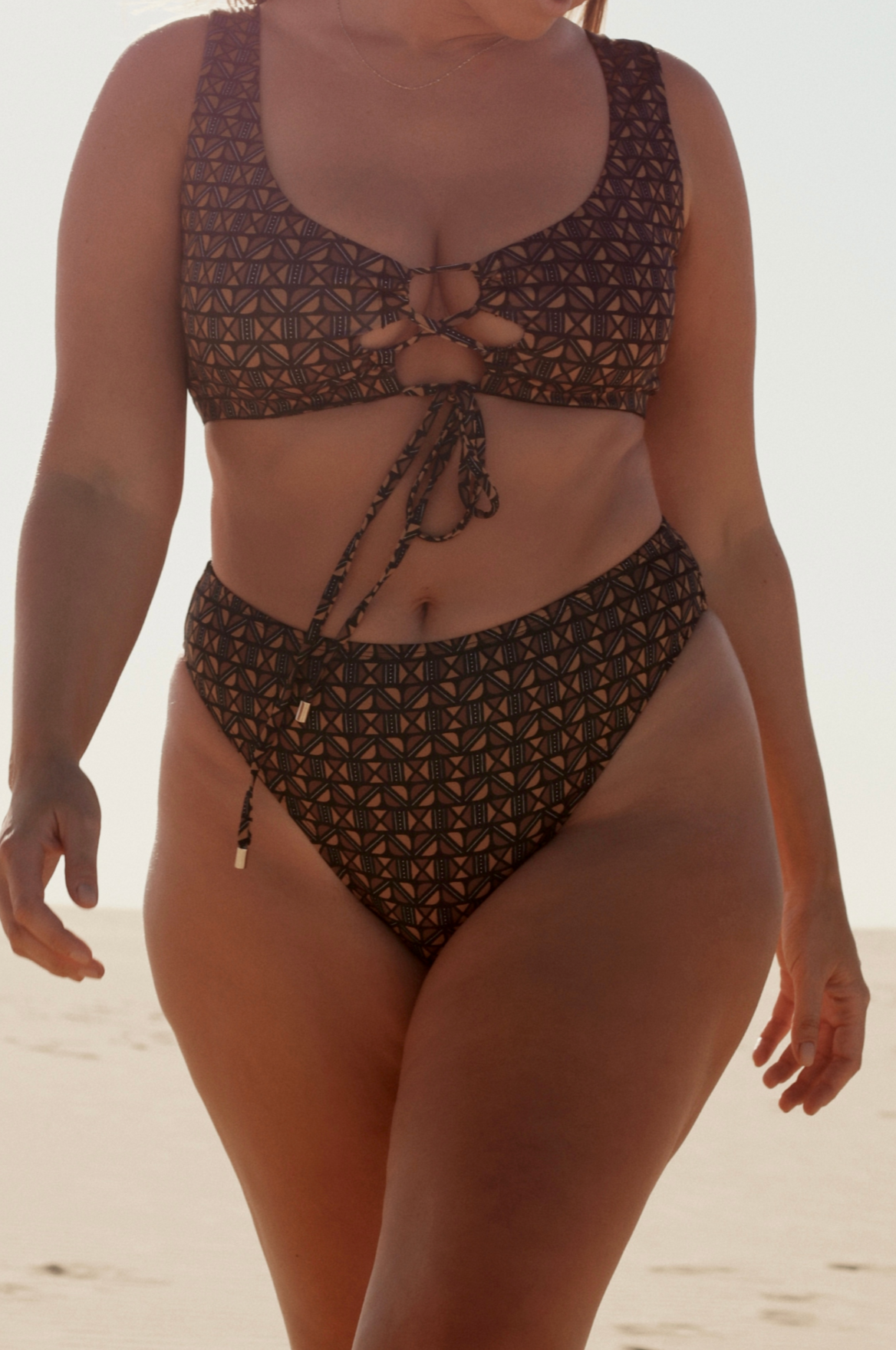 The Aura Top is a statement multi-way top that offers unique style and versatility. With supportive side boning and tie back for custom fit, the Aura can be wrapped or tied to suit every occasion.