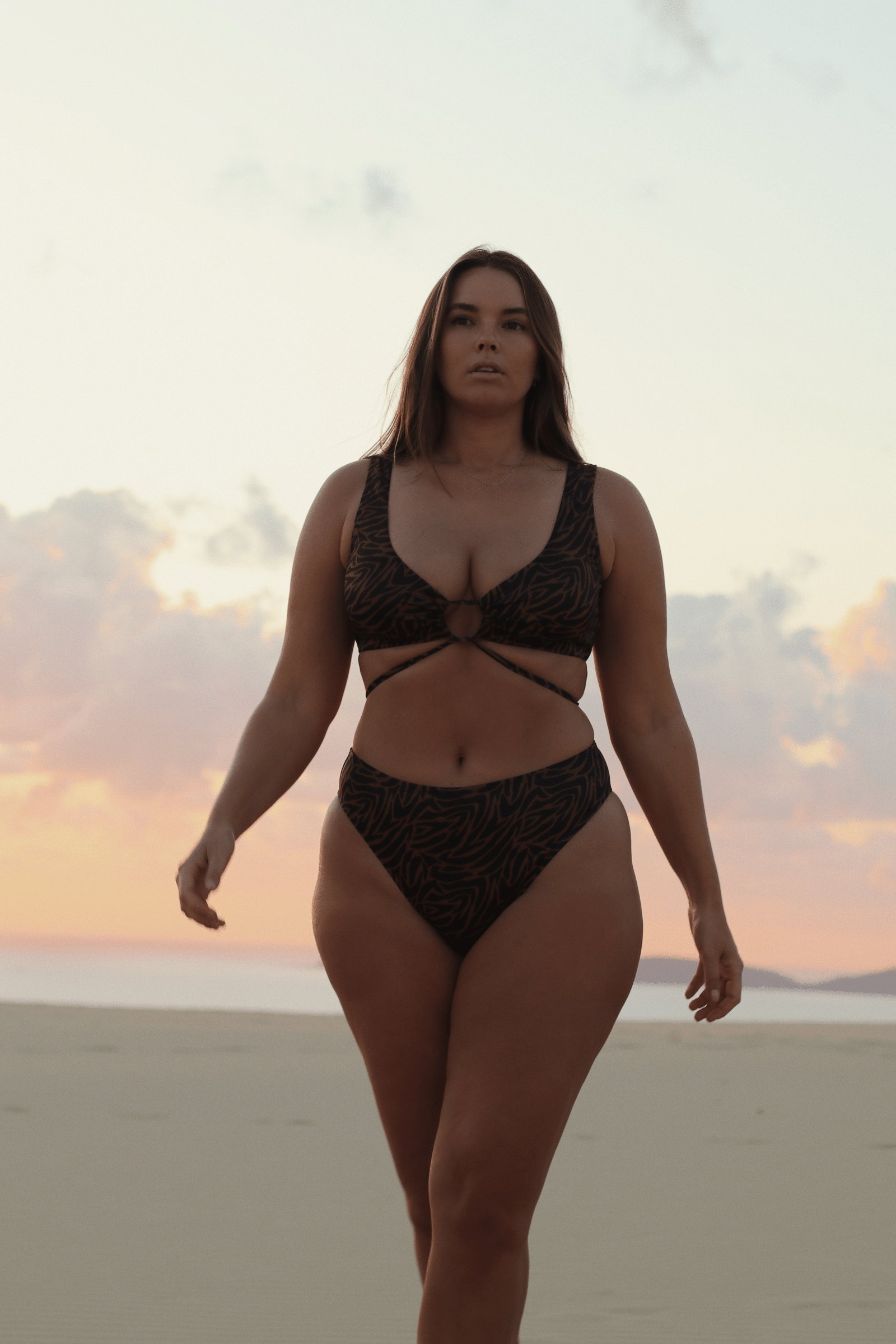 The Aura Top is a statement multi-way top that offers unique style and versatility. With supportive side boning and tie back for custom fit, the Aura can be wrapped or tied to suit every occasion.