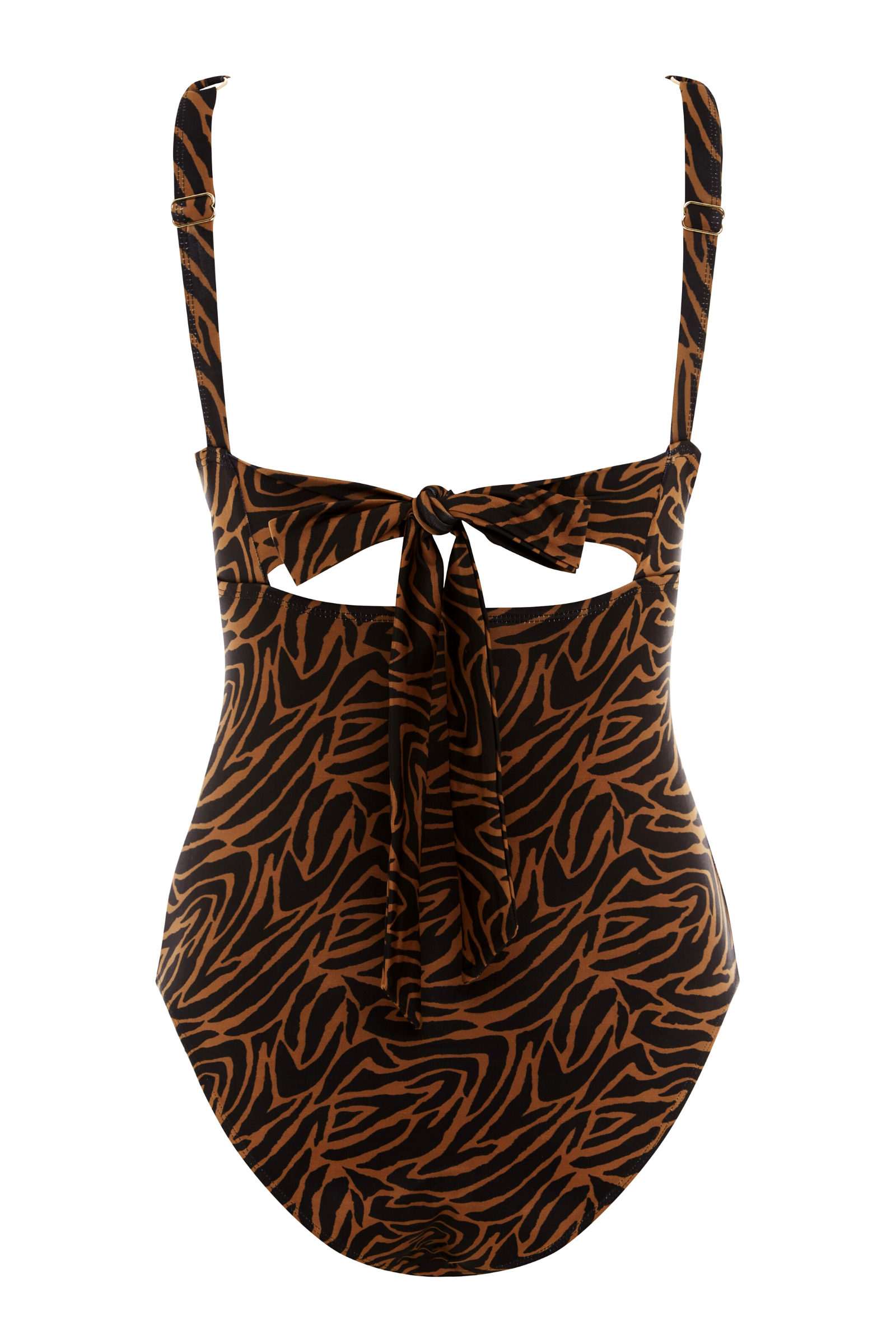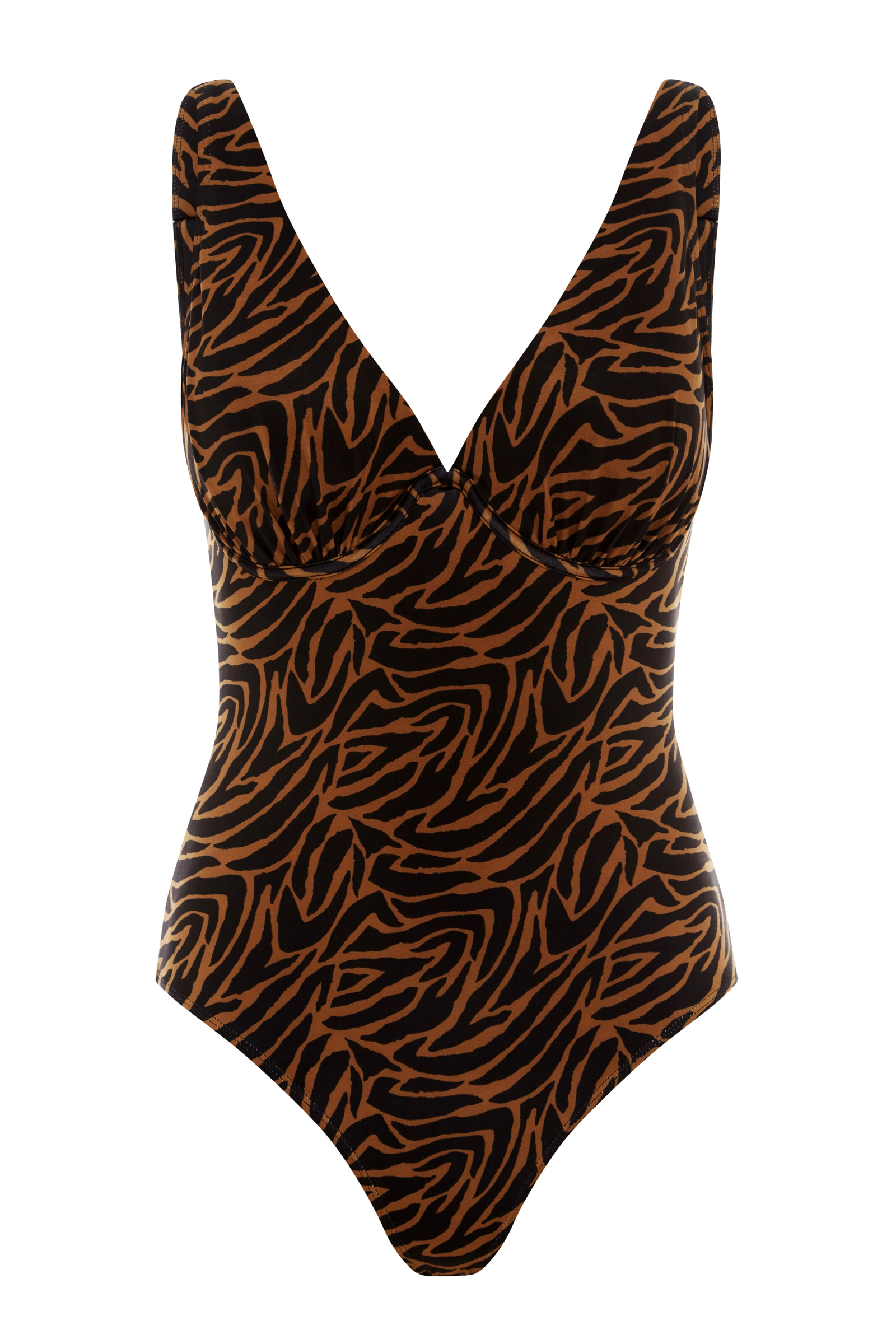 This classic swimsuit features underwire bust support, removable padding and a seamless cup. The Neptune has adjustable shoulder straps, tie back for custom fit and full coverage back.
