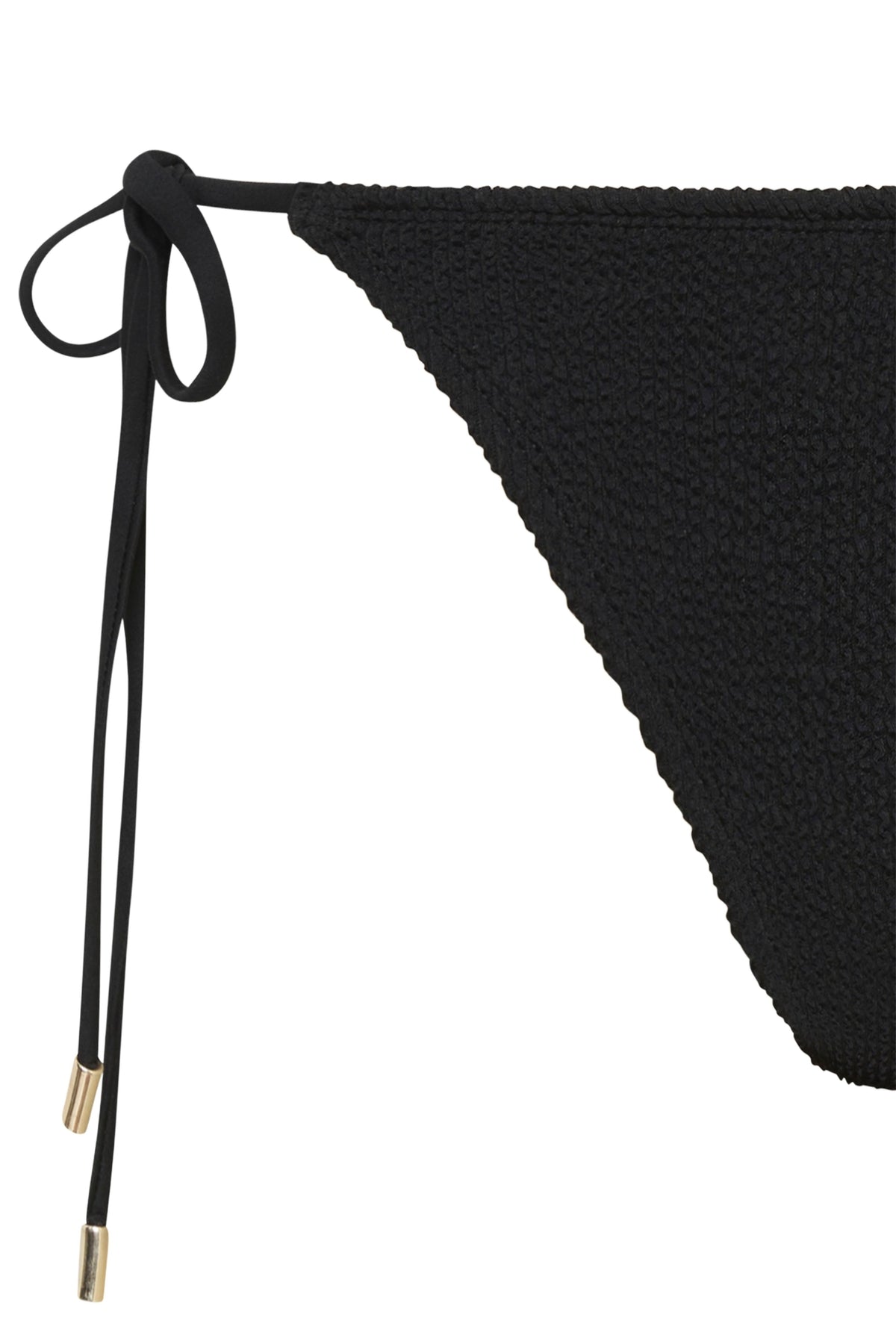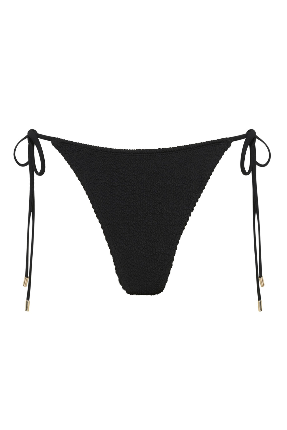The Oasis Bottom is tie side brief designed to fit and flatter every body type. This mid rise style offers the perfect amount of coverage with gold hardware and adjustable ties for a custom fit. Created in a textured 5D fabric with power mesh lining to contour curves and give added support.