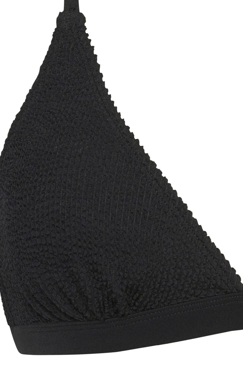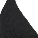 The Leila Top in Black is a minimal triangle bralette that offers both structure and comfort. This refined bikini top features a flattering plunge neckline, seamless cup and additional side coverage to fit and flatter all cup sizes. Designed with removable padding, adjustable shoulder straps and tie back for a flexible fit. Crafted in premium 5D textured fabric with power mesh lining to contour curves and provide smooth, secure lift.